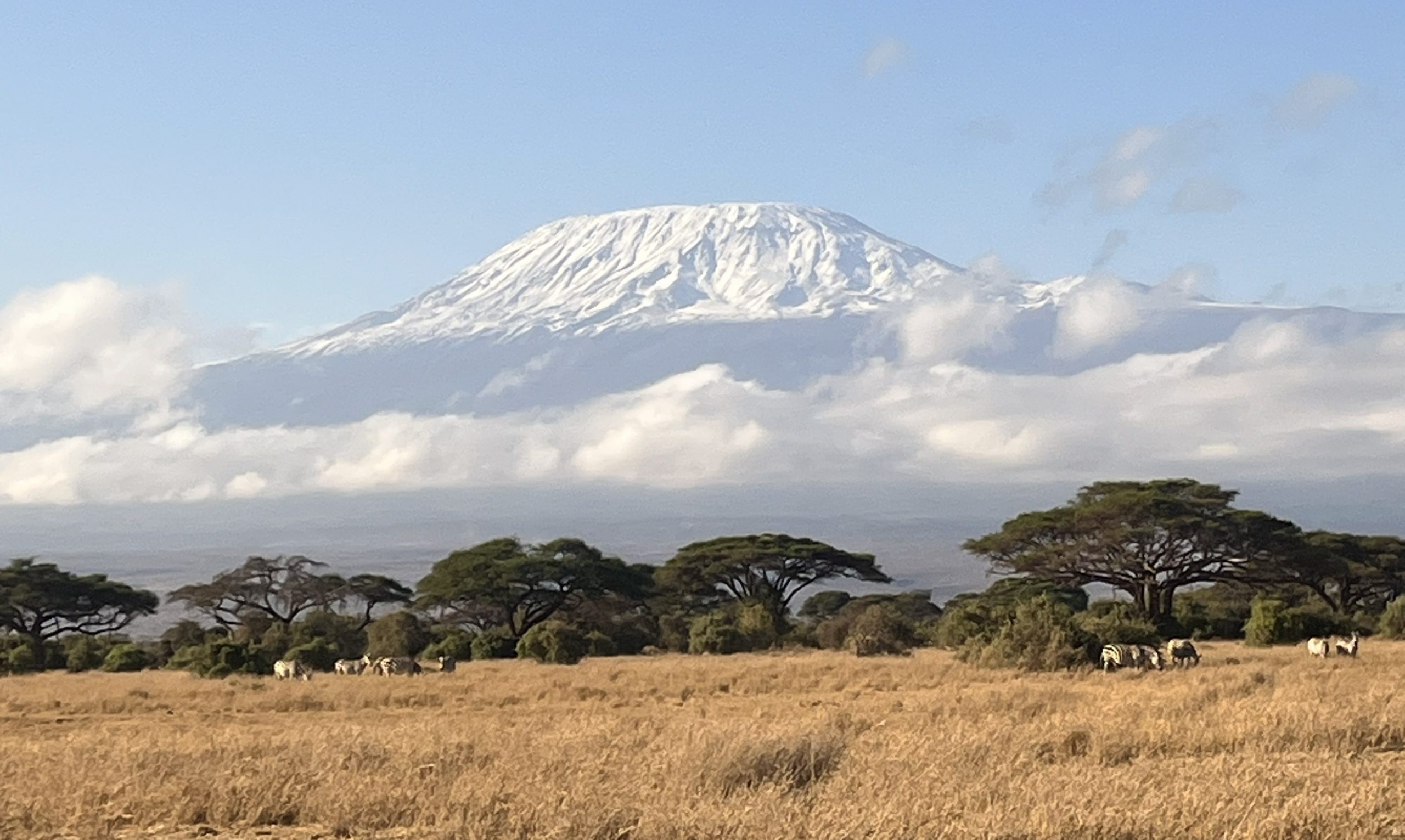 Kilimanjaron lumihuippu näkyy parhaiten varhain aamulla.